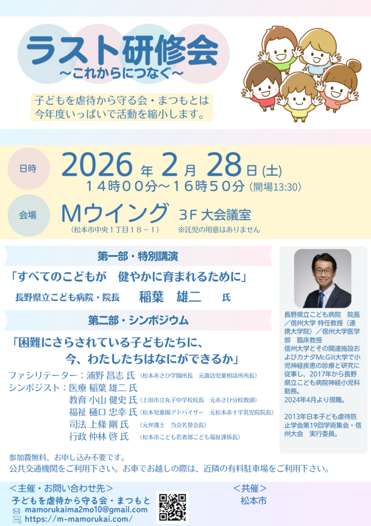 主催・ お問い合わせ先:子どもを虐待から守る会・まつもとmamorukaima2mo10@gmail.com